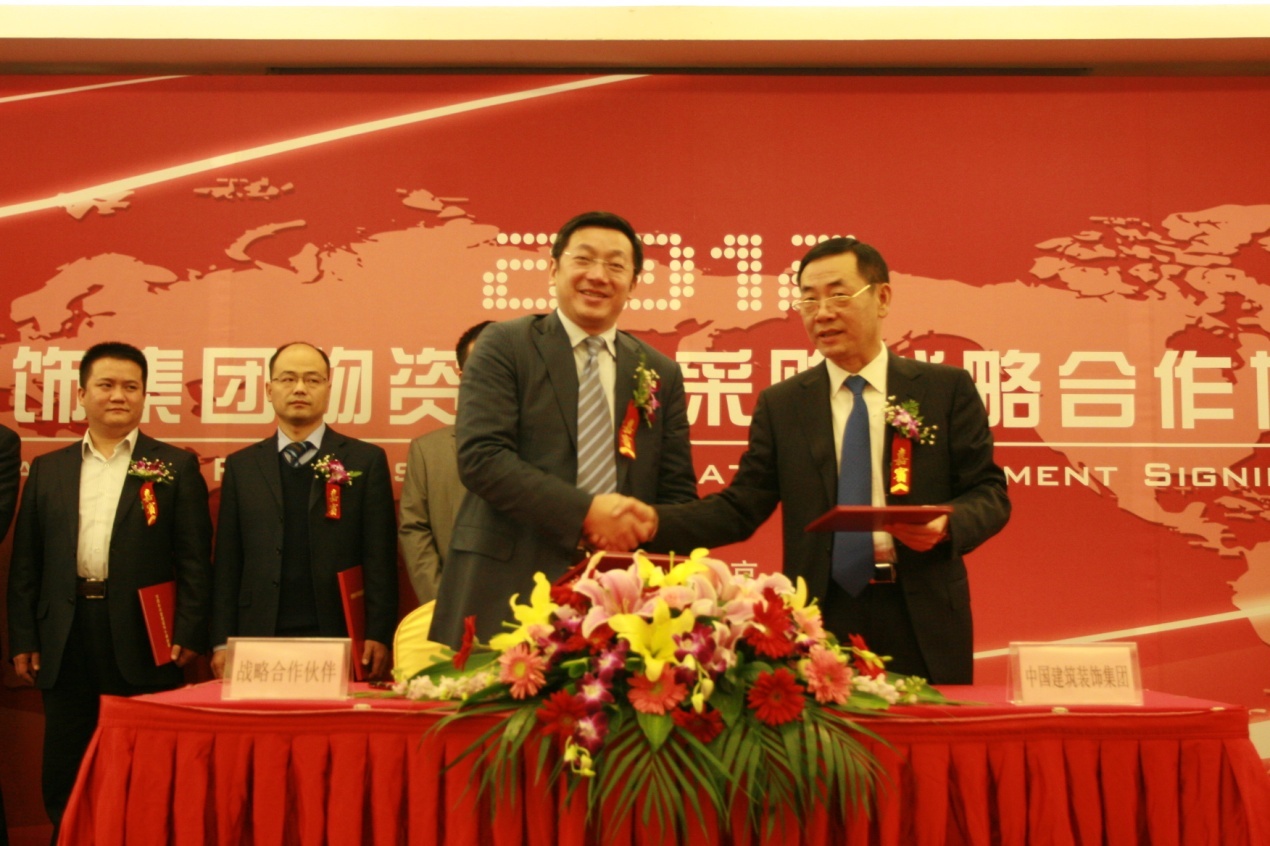 11月2日,北新建材与中建装饰集团在北京举行战略合作协议签约仪式。中国建材股份副总裁、北新建材董事长王兵与中建装饰集团副董事长、总经理、党委副书记田厚春分别代表双方签署了合作协议。中建装饰集团董事长、党委书记郜烈阳及签约双方相关领导参加签约仪式。