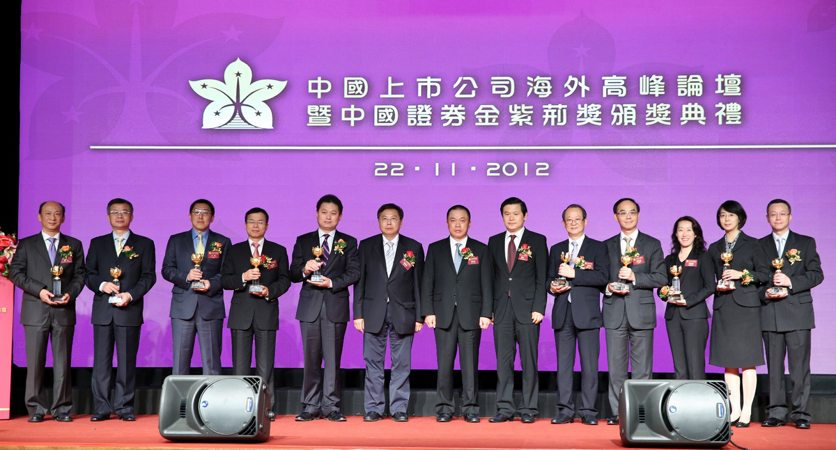 11月22日,由大公报主办,香港与内地多家知名管理机构、证券机构联合举办的中国证券“金紫荆奖”在香港揭晓。中国建材股份有限公司荣获“最具投资价值上市公司”和“***投资者管理上市公司”两项大奖。这是中国建材股份继2011年荣膺“***上市公司”奖后再获殊荣。中国建材股份副总裁、董事会秘书常张利代表公司接受了颁奖。