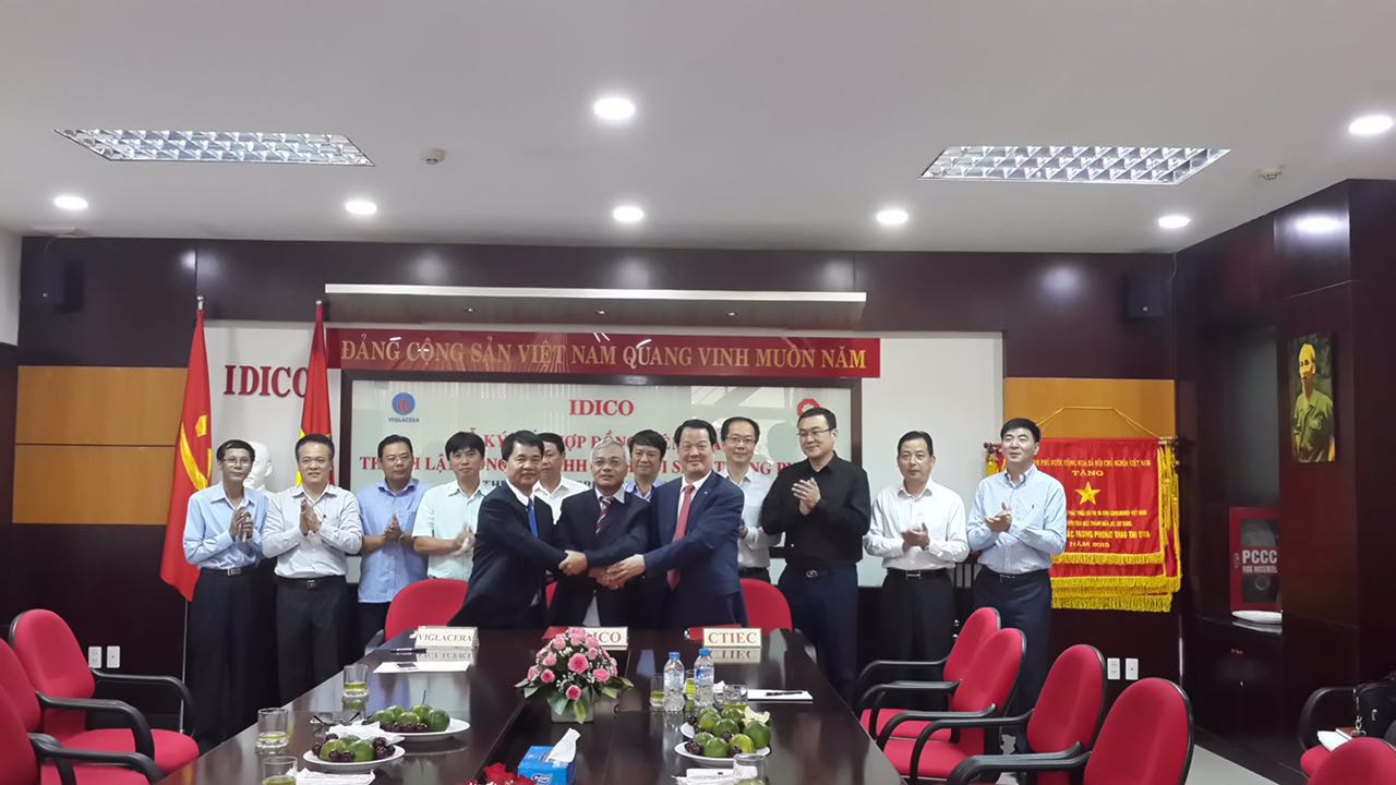 凯盛科技与越南建设部直属单位Viglacera总公司和IDICO总公司就未来在越南共同发展超白浮法玻璃和超白压延光伏玻璃签署了战略合作协议。凯盛科技所属中国建材工程与Viglacera总公司签订了搭桥超白压延光伏玻璃项目工程总承包合同。