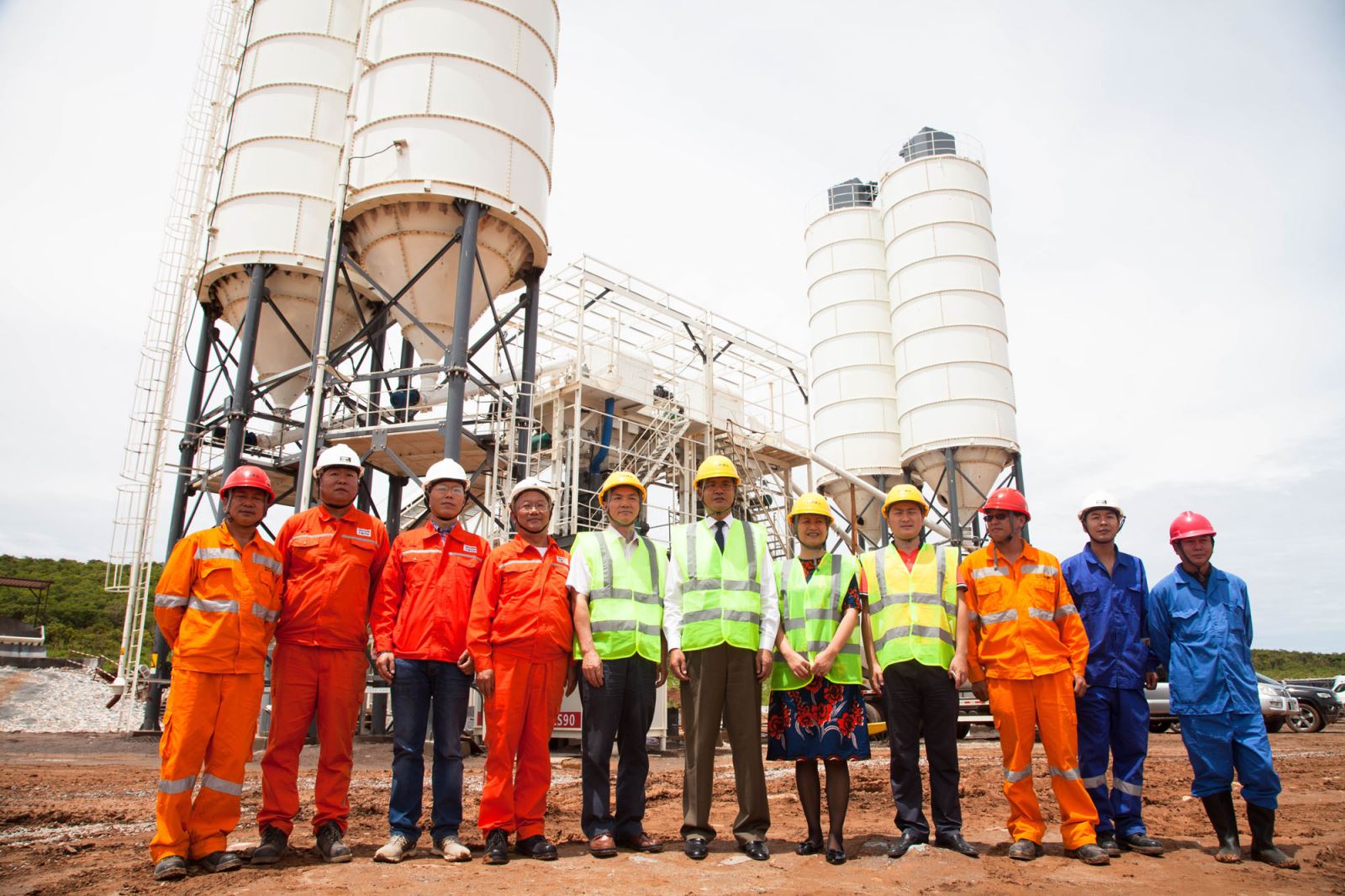 杨优明一行参观了已投产的商混站和已启用的进厂道路,考察调研了建设中的中方员工生活区、水泥生产线等施工现场,详细了解了工业园的总体规划、项目进展、产品定位、带动中国设备出口和中资企业发展、履行社会责任、安全管理、环保标准等内容。杨优明指出,中材赞比亚建材工业园的总体规划和项目推进速度充分展现了中材水泥作为投资方的信心和决心,项目运作模式先进、未来产品多元化,打的是套路多变、攻防一体的“组合拳”;项目施工现场井然有序、安全设施和管理到位、项目推进十分迅速,靠的是深厚的“基本功”。工业园项目在赞比亚甚至在整个非洲都不多见,这值得中国在外投资企业学习和推广。他还表示,项目承担了大量的社会责任,对于发展当地经济、提高当地居民的生活水平将作出不可估量的贡献,工业园不仅仅是一个优秀的投资项目,而且符合“一带一路”精神,是中国央企“走出去”的优秀案例。希望工业园项目顺利建成投产,早日产生效益,成为在赞比亚一流的企业,甚至成为非洲一流、世界一流的现代化企业。