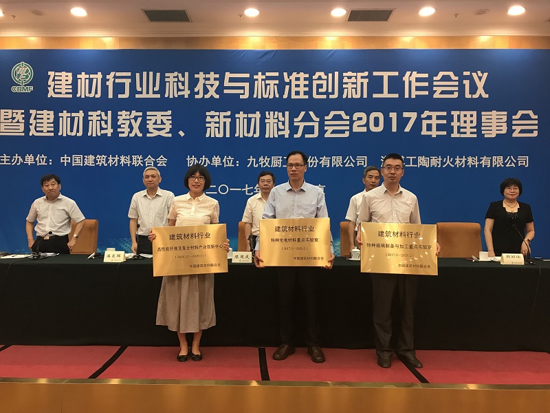 6月17日,由中国建材联合会主办的建材行业科技与标准创新工作会议暨建材科教委、新材料分会2017年理事会在北京召开。会上举行了建材行业第六批科技创新平台授牌仪式,中国建材总院特种光电材料和特种玻璃制备与加工两个行业重点实验室正式授牌。