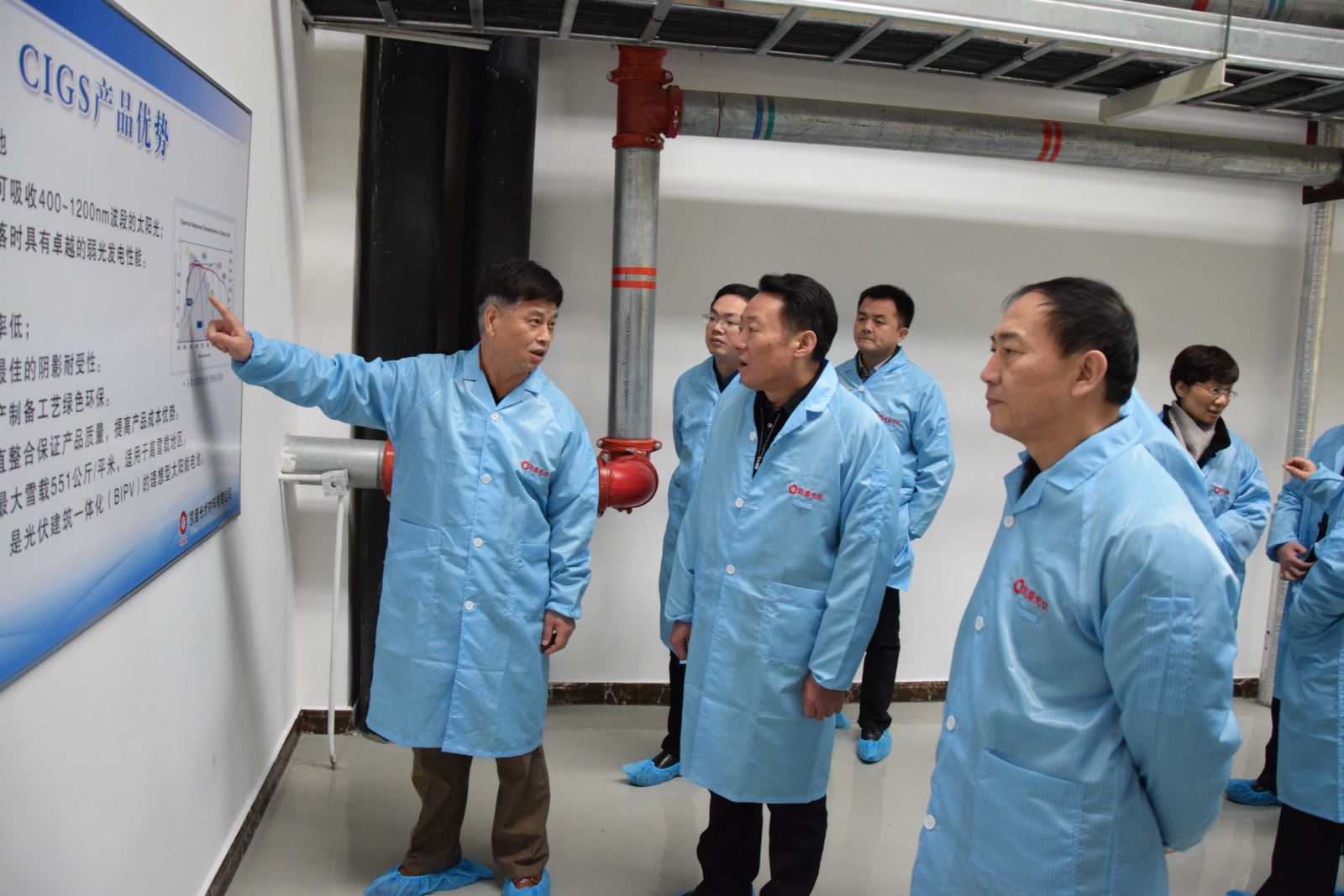 虞爱华一行实地参观了年产300兆瓦铜铟镓硒薄膜太阳能电池项目生产线,听取了凯盛光伏关于生产线和公司发展情况的汇报。他称赞工厂建设非常现代化、产品未来发展空间广阔,并对蚌埠市不断加快创新主体培育、推进创新成果转化取得的成绩给予了充分肯定。他讲到,要充分发挥蚌埠的创新资源和创新平台优势,大力发展战略性新兴产业,为全面推进淮河流域和皖北地区中心城市建设提供有力的产业支撑。