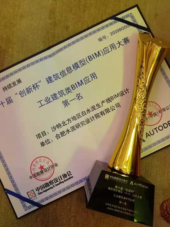 “创新杯”建筑信息模型(BIM)应用大赛由中国勘察设计协会和欧特克软件(中国)有限公司联合举办,是国内影响力首屈一指的BIM技术应用赛事,今年是第十届。本届“创新杯”有效申报项目1228项,经网评、答辩、专家现场评审等环节,最终合肥院申报的“沙特北方地区白水泥生产线BIM设计”项目荣获“工业建筑类BIM应用”第一名,展现了合肥院十年磨一剑,在技术带动企业转型升级的道路上厚积薄发、勇攀高峰的奋斗精神。