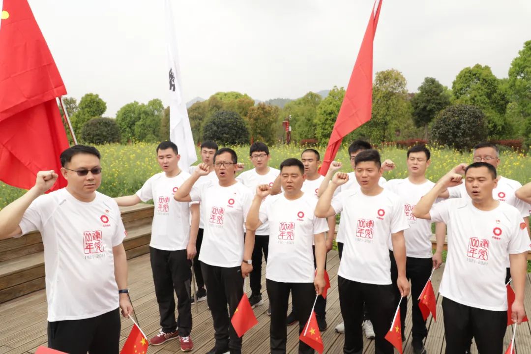 在古田会址前,面对鲜红的党旗,全体人员举起右手,庄严宣誓,重温当年的决心和信念,鞭策激励自己,保持奋斗不息的精神,忠实践行自己的入党誓言。