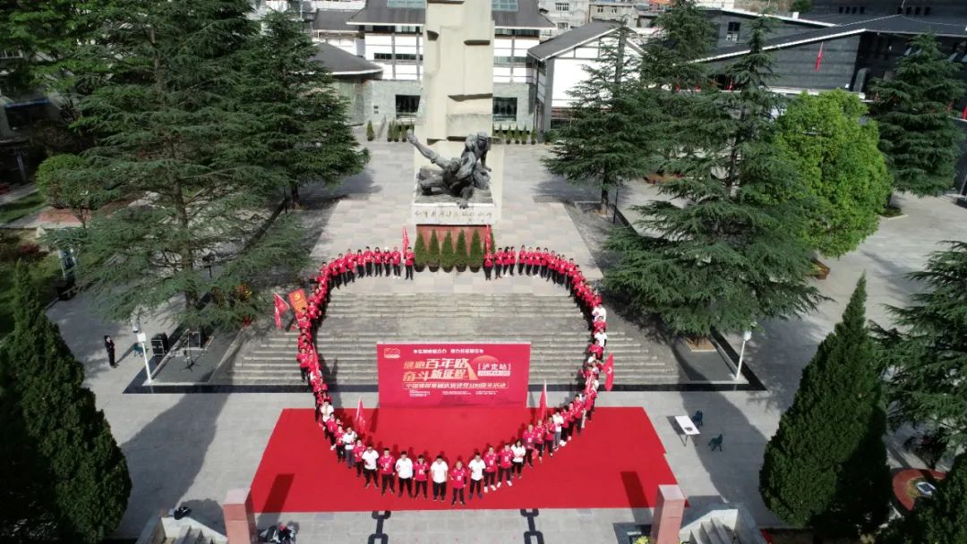 全体人员围着红军飞夺泸定桥纪念碑站成“爱心”形状,集体合唱歌曲《没有共产党就没有新中国》,歌声嘹亮,响彻整个纪念碑公园,表达了全体党员对党的忠诚与信仰。