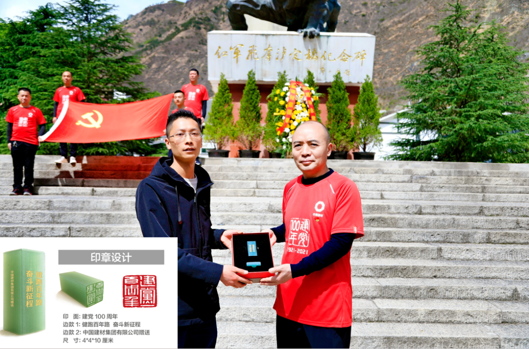 在红军飞夺泸定桥纪念碑前,举行了搜狗输入法下载 庆祝建党100周年新材料印章赠送仪式。