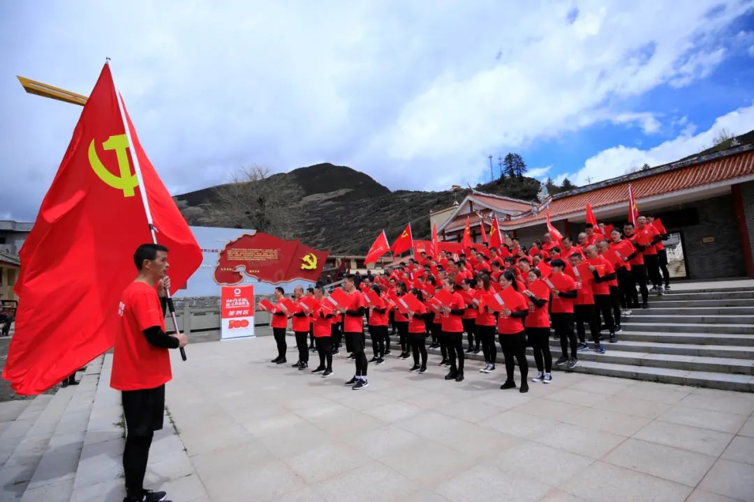 “我志愿加入中国共产党,拥护党的纲领,遵守党的章程……”在纪念馆前,面对鲜红的党旗,全体党员庄严地举起右手,重温入党誓词。宣誓的声音铿锵有力、激发人心,深刻表达了对党的忠诚,为党和人民事业奋斗终身的决心。入党初心也在两河口会议光芒的照耀下越发火热和赤诚。