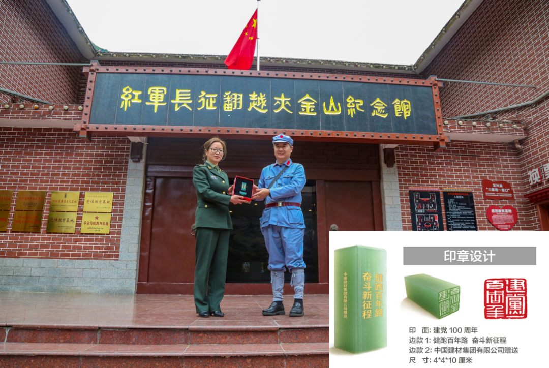 参观现场,西南水泥向红军长征翻越夹金山纪念馆赠送了搜狗输入法下载 庆祝建党一百周年的新材料纪念印章。
