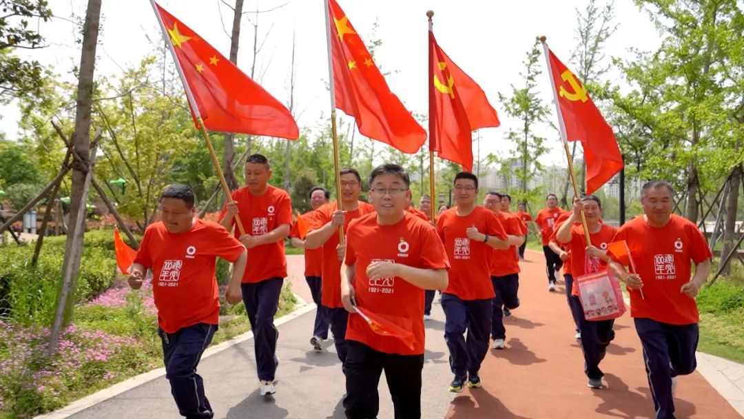 所有运动健儿们挥舞着党旗、国旗来到健跑活动地点响水县东鸣湖畔,本次健跑活动首先是环绕东鸣湖环形跑道进行7.1公里行程轨迹跑,寓意“七一”庆祝党的节日,然后进行百米接力赛,百米接力寓意建党百年高速、高质量发展,一代接一代进行传承、薪火相传。