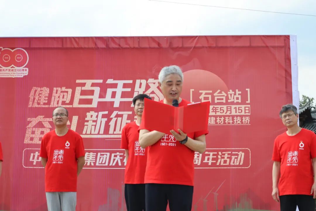 健跑的起点、终点均设在中国建材科技桥。在党旗的引领下,在铿锵嘹亮的歌声中,71名党员和入党积极分子奋力起跑。大家士气昂扬,坚定地朝着目标、终点奋进。在新时代的长征路上,传承初心和使命。