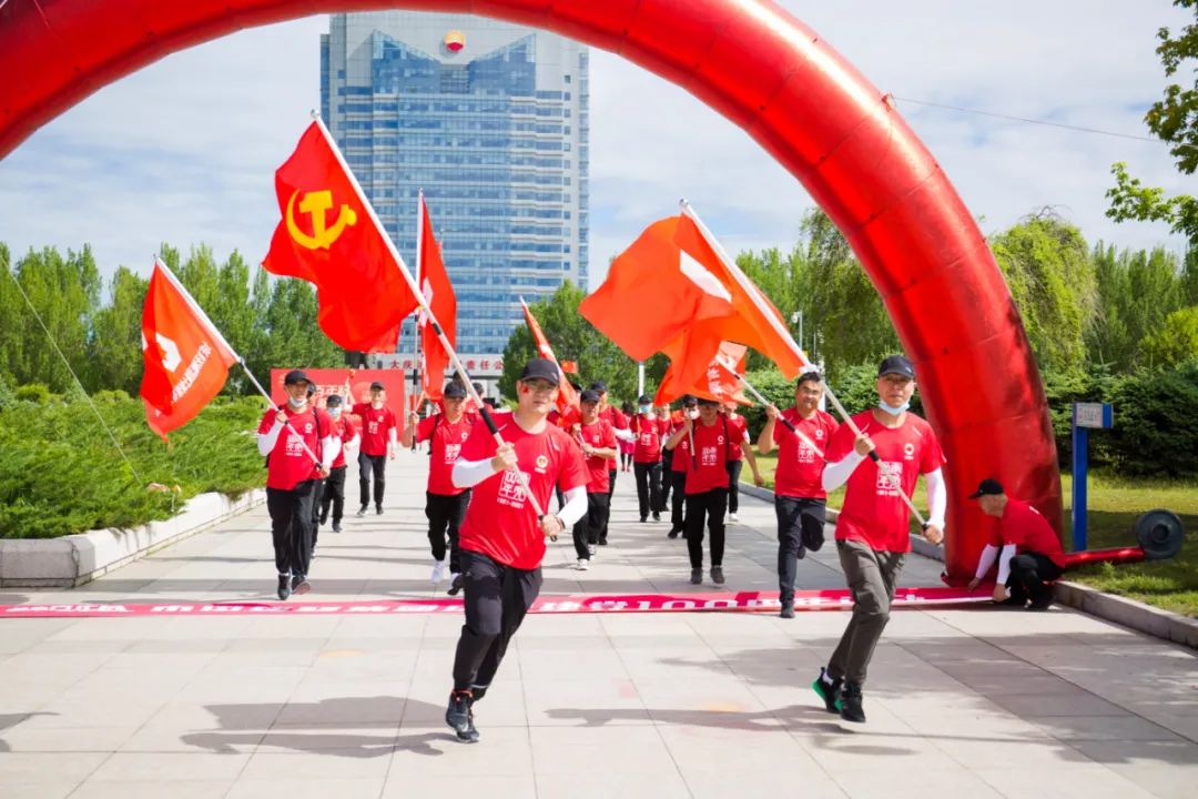 本次健跑活动在大庆市铁人广场举行,设置全程6.2公里,6.2寓意纪念2021年大庆油田发现62周年。1959年9月26日,新中国成立10周年前夕,随着一股工业油流从松辽盆地北部的“松基3井”喷涌而出,大庆油田正式诞生,从此,中国甩掉了“贫油”的帽子,中国石油工业屹立在世界东方。队伍62人高举党旗和中国建材、各企业旗帜向着终点奋力出发,象征着公司全体员工团结一致、共同向前,奔赴新征程。
