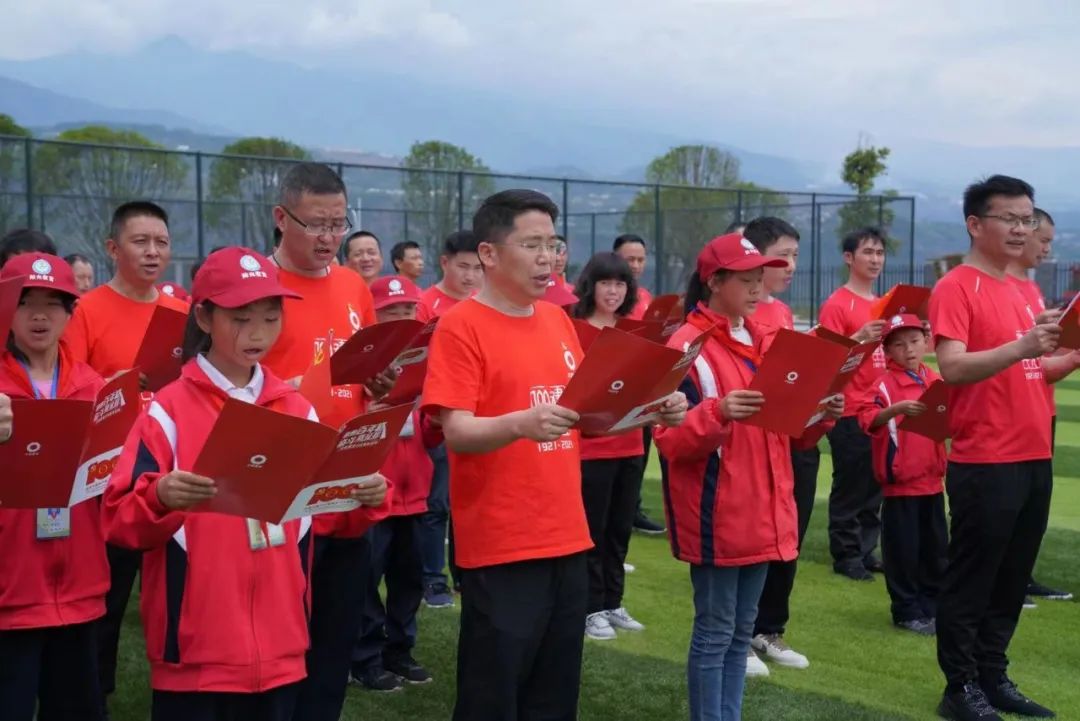 最后,全体党员职工与学校学生共同有序排列成“100”“7.1”字样队形,挥舞党旗,高喊“健跑百年路、奋斗新征程”主题,热烈庆祝中国共产党成立100周年。