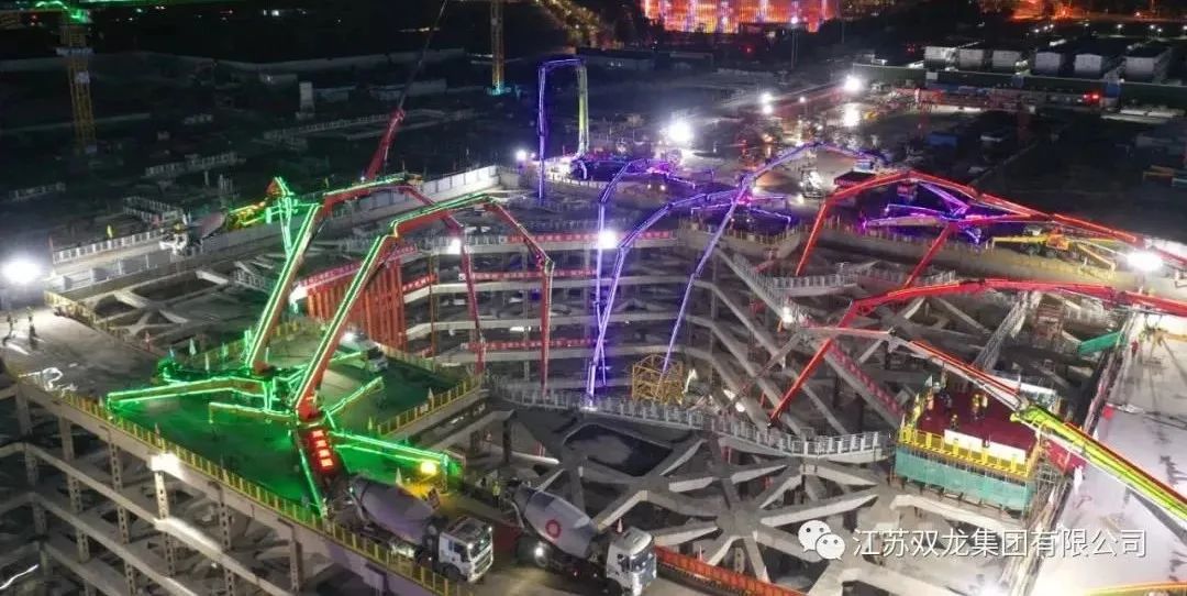近日,中联水泥所属江苏双龙集团全方位、全天候为江苏第一高楼、江北新区地下空间绿地金茂约500米超高层底板大体积混凝土浇筑保驾护航。本次浇筑的项目是绿地金茂金融中心,也是江苏省第一高楼,江苏双龙集团共投入4个站点、10条生产线(含2条备用线)、13台汽车泵、238辆轻量化搅拌车和跟进信息指挥系统。这座摩天大楼建成后将成为国家级新区新地标。