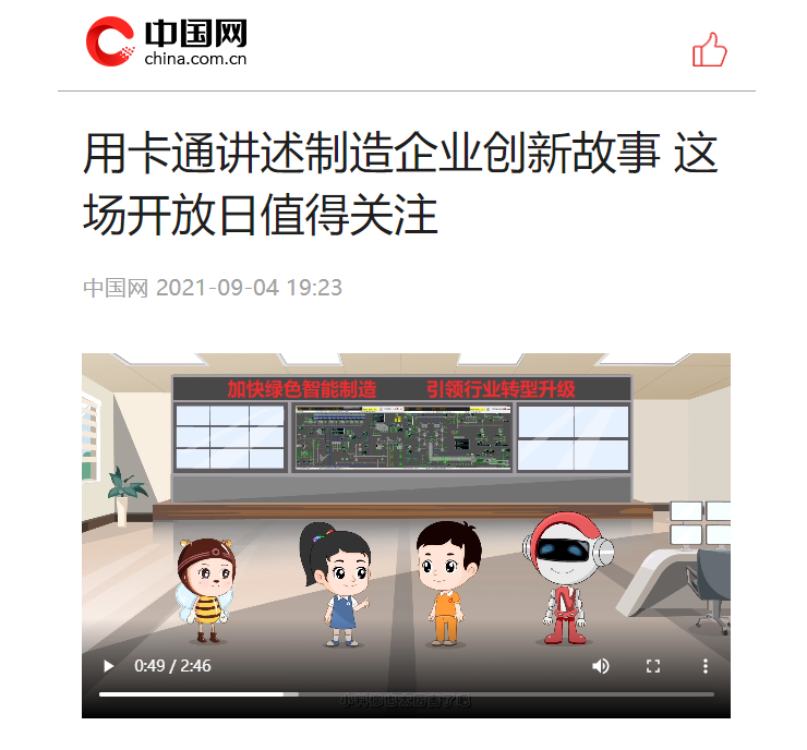 中国网另一篇专稿《用卡通讲述制造企业创新故事 这场开放日值得关注》重点报道了小料、小云等四个卡通人物形象及背后材料故事,提到了禾苞蛋乡村振兴产品和3D陶瓷打印产品、新材料印章等众多文创周边,讲述中国集团在新材料推广应用、定点帮扶等文化软实力的承载力、展现力和传播力。