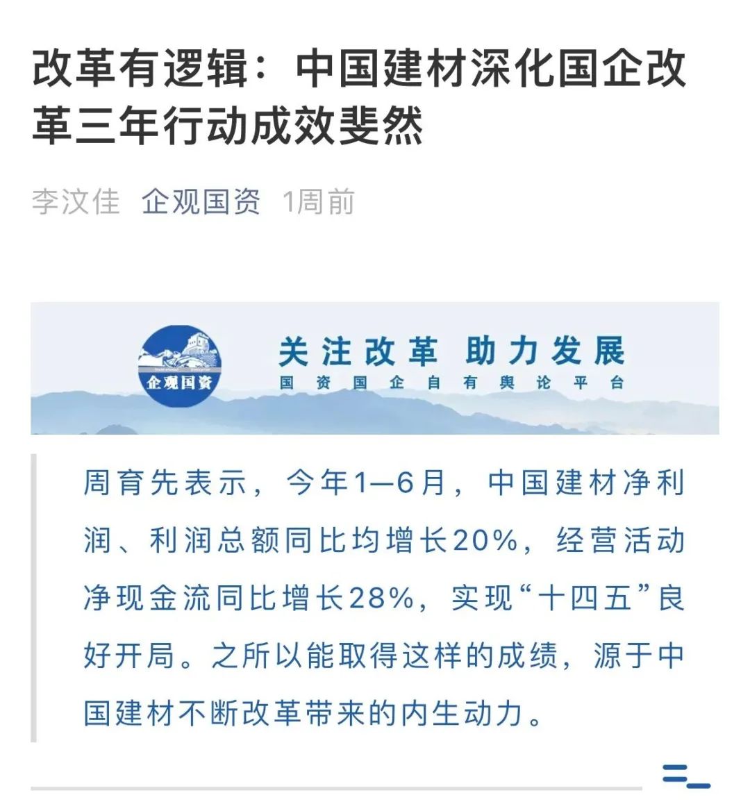 国企改革创新典型宣传暨媒体走进中建材报道集锦②