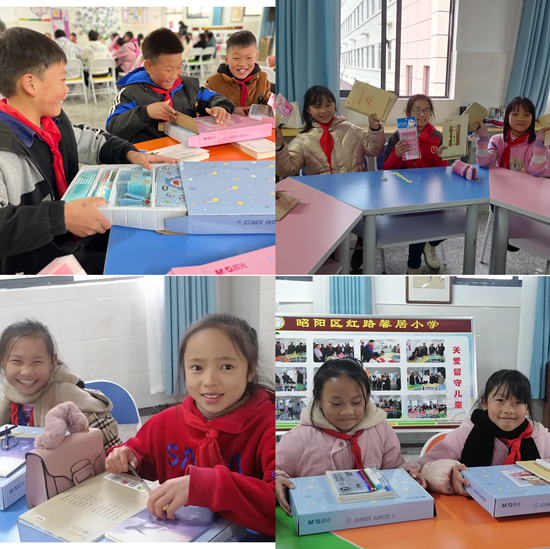 此次活动北新集团党委、团委共向红路馨居小学的学生寄出了文具礼盒、字帖、书籍等200多件微心愿礼包。