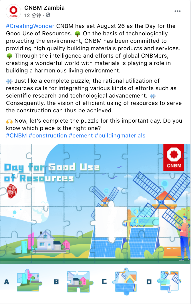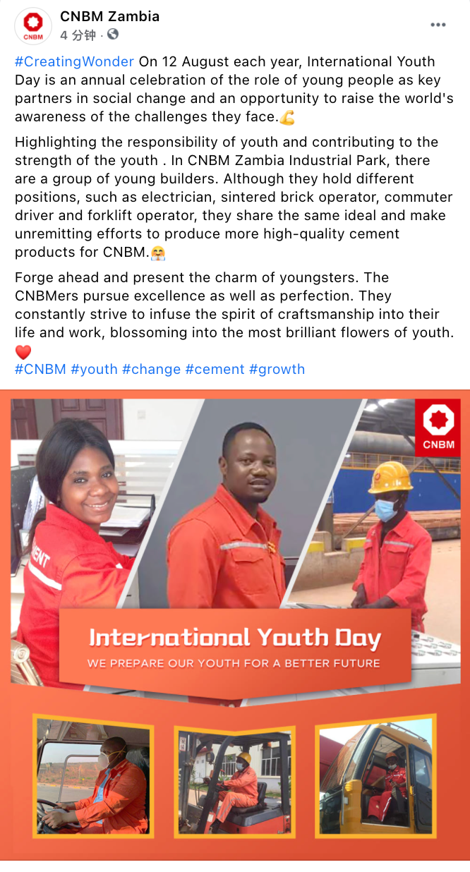 围绕搜狗输入法下载 “善用资源、服务建设”核心理念和“材料创造美好世界”企业使命,中材水泥投资建设的中国建材赞比亚工业园以“讲好央企故事、传播中国声音”为主线,精准定位,突出建材特色,创新本土表达,优化叙事策略,深入把握新媒体时代国际传播的技巧和规律,精细化运营“CNBM Zambia”海外社交媒体账号,打造了具有重要传播影响力的企业海外新媒体阵地。