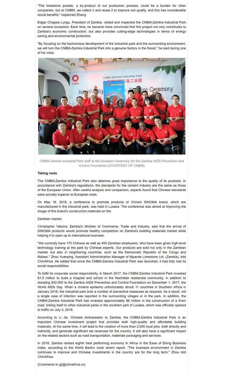 与赞比亚时报、每日邮报、民族日报、卢萨卡时报、国家广播公司等多家当地主流友好媒体一道,加强在选题策划、合作报道等方面的沟通,设置关键议题,抓住重要时间节点,持续推出了一批宣传中非合作共赢理念,提升企业正面形象的专题报道,扩大知华友华的媒体“朋友圈”,为深化企业属地化经营,提升中国建材品牌海外传播声量赋能助力。