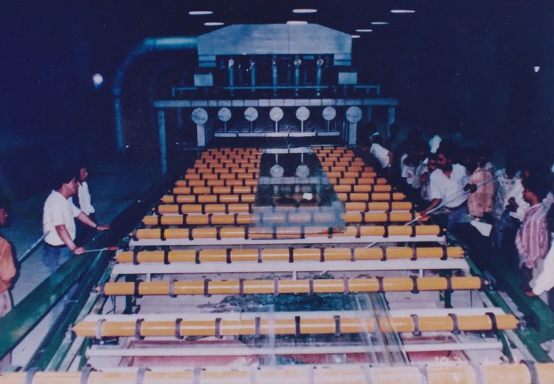 1979年耀华建成“压延玻璃生产线”,1980年从日本引进“对辊法”成型技术,生产水平迈上了一个新台阶。