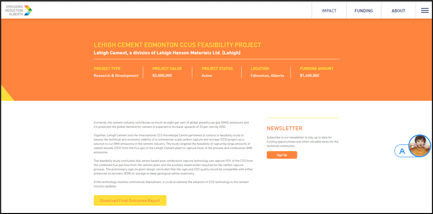 近日,中材节能参与编制的水泥厂全尺寸碳捕集项目可行性研究报告(以下简称“可研报告”)在ERA(Emission Reduction Alberta )网站正式发布,这标志着中材节能顺利地完成了与加拿大CCS知识中心签订的《CO2捕集与封存技术设计咨询合同》。此次是中材节能作为知名余热利用服务商首次参与到国际碳捕集与封存项目的研究当中,参与完成了世界上首个CCUS应用可研报告。咨询合同的顺利完成,不仅为中材节能迈入CCUS领域打下了坚实的基础,也进一步提升了中材节能在国际余热利用行业的影响力,为中材节能在全球范围进军碳减排事业迈出了坚实的一步。