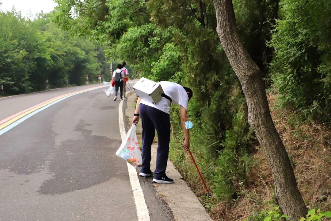 登山途中,志愿者们自行组队助力低碳环保生活,认真地捡拾路人丢弃在草丛、树坑中的烟蒂、吸管等垃圾。大家干劲十足,充分发扬不怕脏、不怕累的精神,争当绿色低碳生活的实践者。