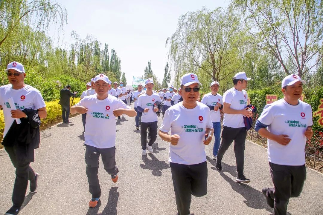 参加活动人员在白芨滩防沙林场道路上开展3公里健跑活动,以实际行动践行绿色环保理念,拥抱低碳生活。