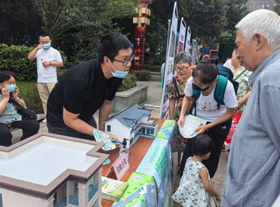 骄阳似火下,华构科技的志愿者们以饱满的热情开展工作。他们积极宣讲国家绿色发展和节能政策内容、普及健康生活常识、分享绿色出行方式,并结合华构科技绿色节能新型房屋模型为市民们科普装配式绿色建造知识及应用,青年们的热情与专业受到了现场市民的高度认可,乐山电视台等相关媒体就华构科技绿色建造产业进行了现场采访报道并给与赞誉。