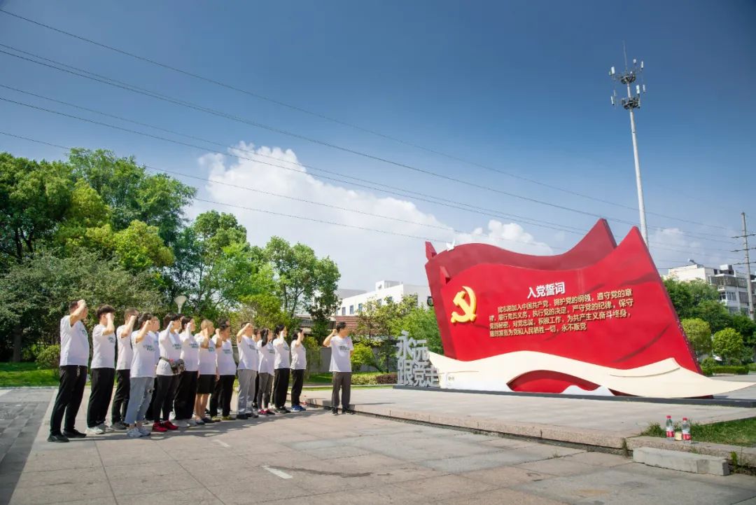 “七一”前夕,北新地材全体党员在红色革命圣地——常州滨江开发区红帆广场渡江一号馆重温入党誓词,坚定使命担当。