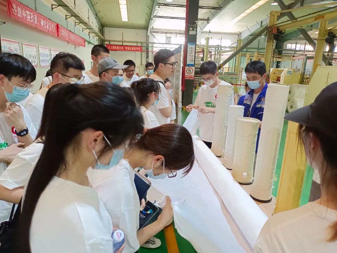 南京玻纤院组织职工代表走进下属膜材料公司,了解企业的技术发展史、膜技术优势,参观了过滤材料生产全流程,并进行现场互动交流。
