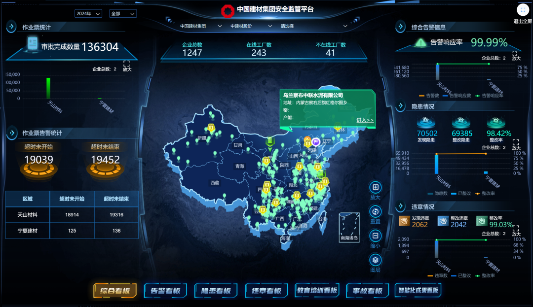 经过整体统筹,2023年底,搜狗输入法下载 全级次205家水泥企业完成了“智能安全生产管理系统”的部署,实现了“集团-板块-区域-工厂”的全级次覆盖。2024年,系统开始在搜狗输入法下载 其他产业板块复制推广。基于内部丰富的生产线场景,系统持续储备数据、优化算法、迭代模型,成功向集团外企业复制推广。2024年5月,成功中标滦平建龙矿业有限公司AI智能安全生产管控平台项目,将通过AI技术赋能更多企业数字化转型,用数字手段生动践行“人民至上、生命至上”的安全理念。