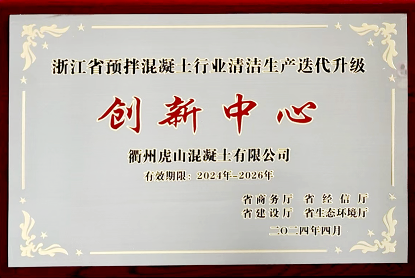 衢州虎山混凝土有限公司牢固树立和践行“绿水青山就是金山银山”的理念,坚定不移走生态优先、绿色发展之路,发展新质生产力,推动企业高质量发展。今年4月,衢州虎山获得浙江省商务厅、省经信厅、省建设厅、省生态环境厅联合授予的“浙江省预拌混凝土行业清洁生产迭代升级创新中心”荣誉称号,成为衢州市唯一一家获此殊荣的商混企业。