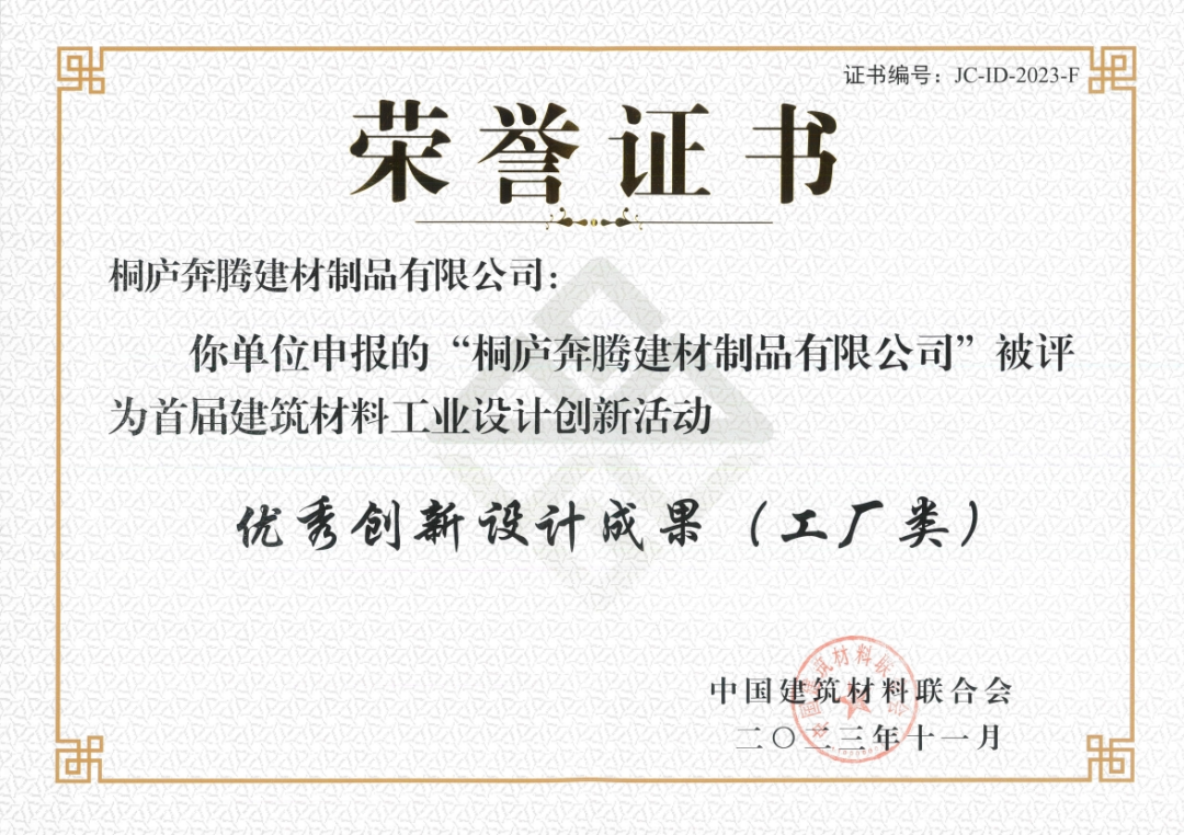 去年12月,新项目获得中国建筑材料联合会“首届建筑材料工业设计创新活动”的“优秀创新设计成果(工厂类)”奖。