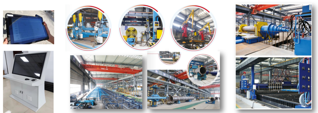 锅炉装备生产属难度较大的离散型制造,中材节能积极探索数字化生产,在关键工序引进数字化生产设备。主要有ATCP系统、筒体卧式组对装置、移动式数控钻床、中频加热滚压收口智能设备、坡口数控加工设备、角焊缝气保自动焊机、管排埋弧自动焊设备等。通过图文档管理系统软硬件及5G专网实现制造过程智能化及无纸化。