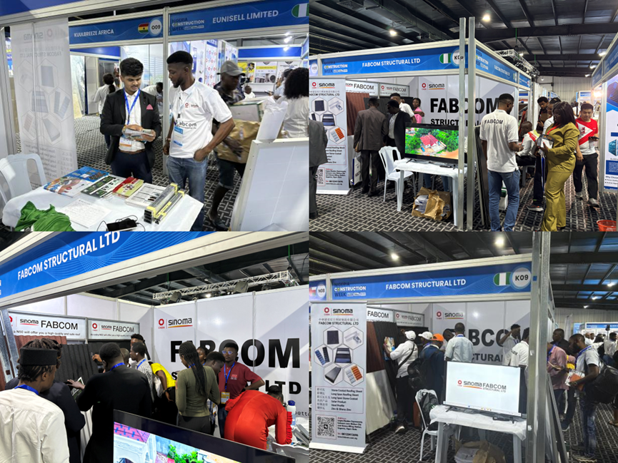 近日,中材建设尼日利亚制造有限公司参加了由国际展览组织者Elan Expo在尼日利亚拉各斯Landmark Centre主办的第9届国际建筑及房屋材料展。展会期间,公司镀锌彩石瓦、光伏瓦、轻钢龙骨等新型产品受到客户一致好评,客户更加了解公司的品牌价值及产品定位,并与尼日利亚大型房屋建设工程公司进行洽谈,寻求潜在商务合作机会。