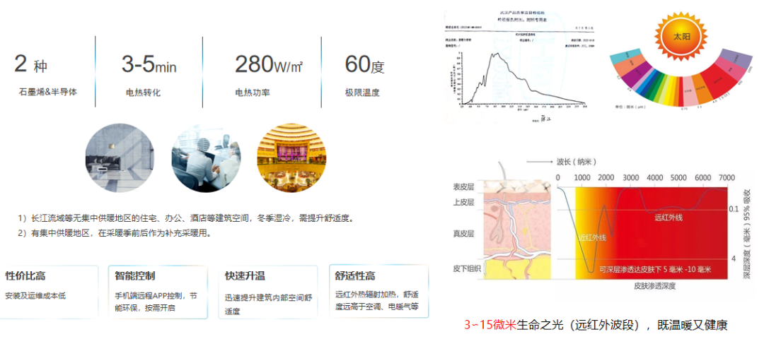 龙牌采暖板以特制高强度、高密实度石膏基板材为基板,采用石墨烯为热源,智能温控,远红外传热方式的采暖装饰一体化板材。其具有发热快、面积大、均匀、节能环保、安装维护方便等优势。龙牌采暖板可辐射3~15微米远红外线,辐射传热升温迅速,3分钟即可发热,10分钟可实现舒适温暖空间,较传统集中供暖可节约30%成本,该体主要用于家居住宅、办公场所、学校和医院、旧房改造以及装配式要求较高的建筑领域。