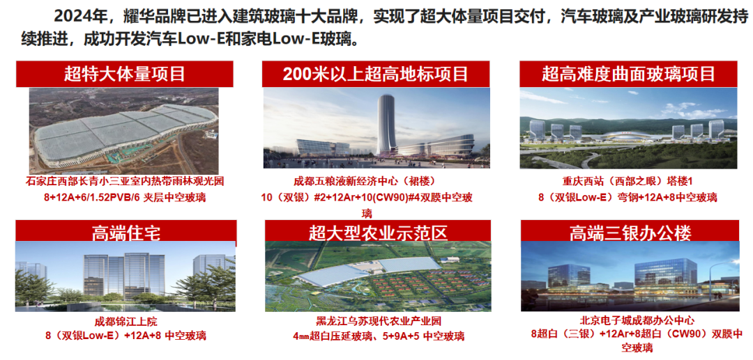 现在这些玻璃已经用在了很多大项目里:成都五粮液新经济中心的裙楼、重庆西站的“西部之眼”塔楼,用的是耀华的Low-E中空玻璃,既好看又节能;江北机场、雄安高铁站这些人流密集的地方,装的是硼硅防火玻璃,守护着大家的安全;就连黑龙江的乌苏现代农业产业园,也用了耀华的超白玻璃,让温室大棚里的作物能晒到更充足的阳光。