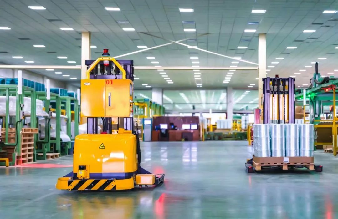 AGV小车正在未来工厂穿梭运行