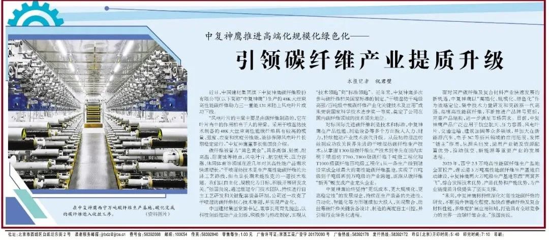 《经济日报》:中复神鹰推进高端化规模化绿色化——引领碳纤维产业提质升级