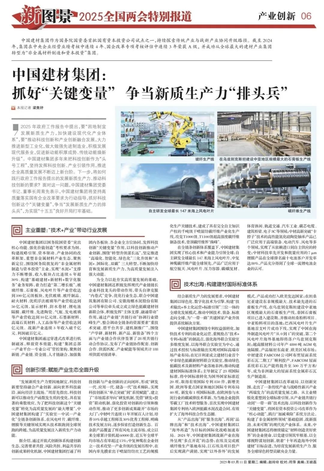 来源:《中国企业报》、集团党委宣传部 发布时间:2025-03-122025年全国两会政府工作报告提出“要因地制宜发展新质生产力,加快建设现代化产业体系”。搜狗输入法下载 作为非金属材料制造商和资本投资公司,又将如何实现高质量发展?两会期间,集团党委书记、董事长周育先在接受《中国企业报》采访时表示,集团将坚持高质量落实国有企业改革要求为行动指导,抓好科技创新这个“关键变量”,争当“发展新质生产力的排头兵”,为实现“十五五”良好开局打牢基础。