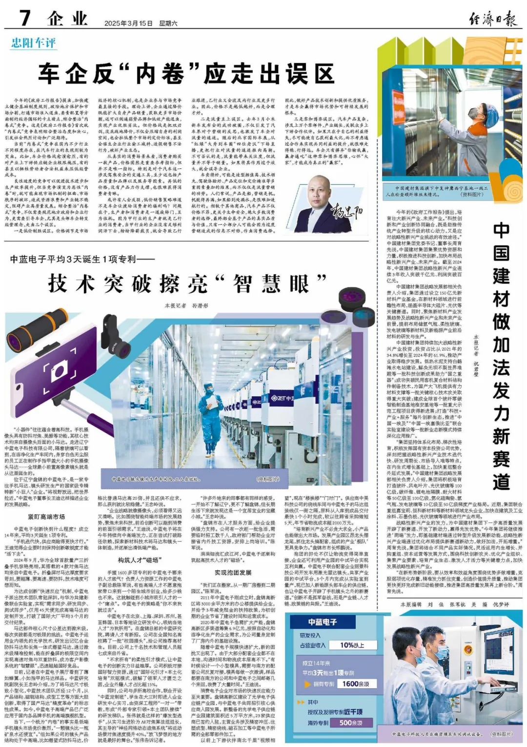 来源:经济日报、集团党委宣传部 发布时间:2025-03-17近日,《经济日报》刊发《中国建材做加法发力新赛道》一文,讲述中国建材通过基础建材端进行转型升级发展新动能,战略性新兴产业端通过优化布局提供赛道新动力。跟着小料来看看详细内容吧~