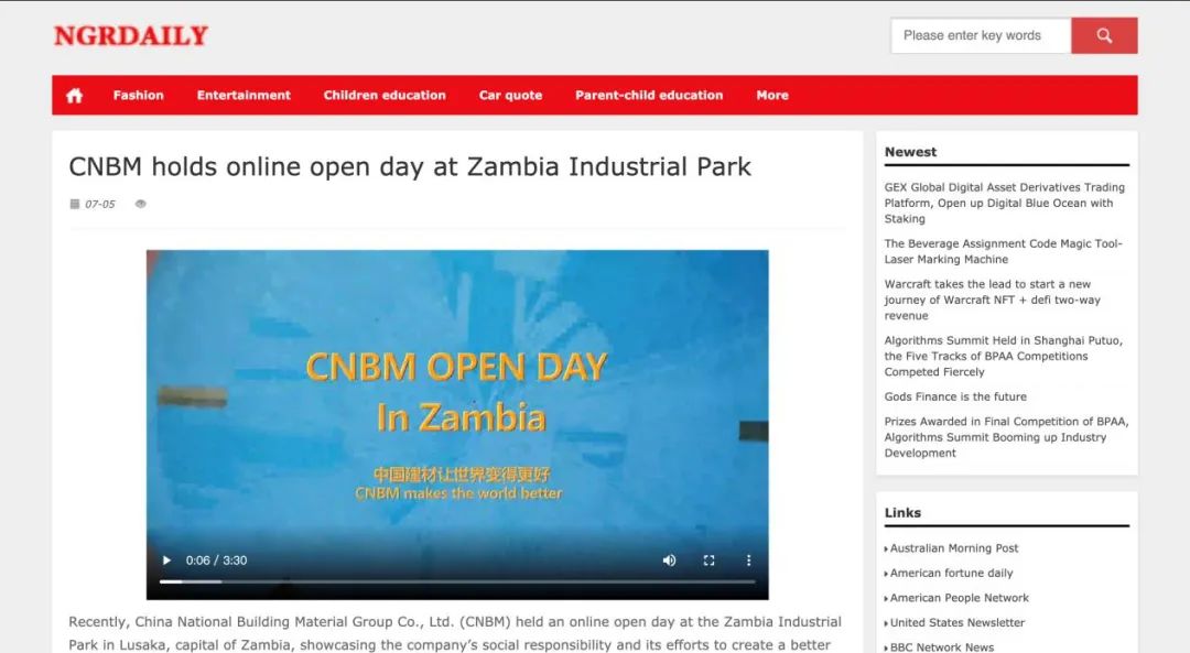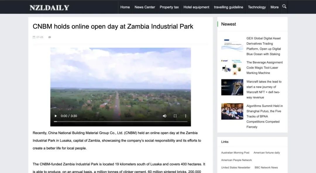 “善用资源日”境外预热 | 中国建材赞比亚工业园“云开放”:用爱心和责任搭建中赞友谊桥梁