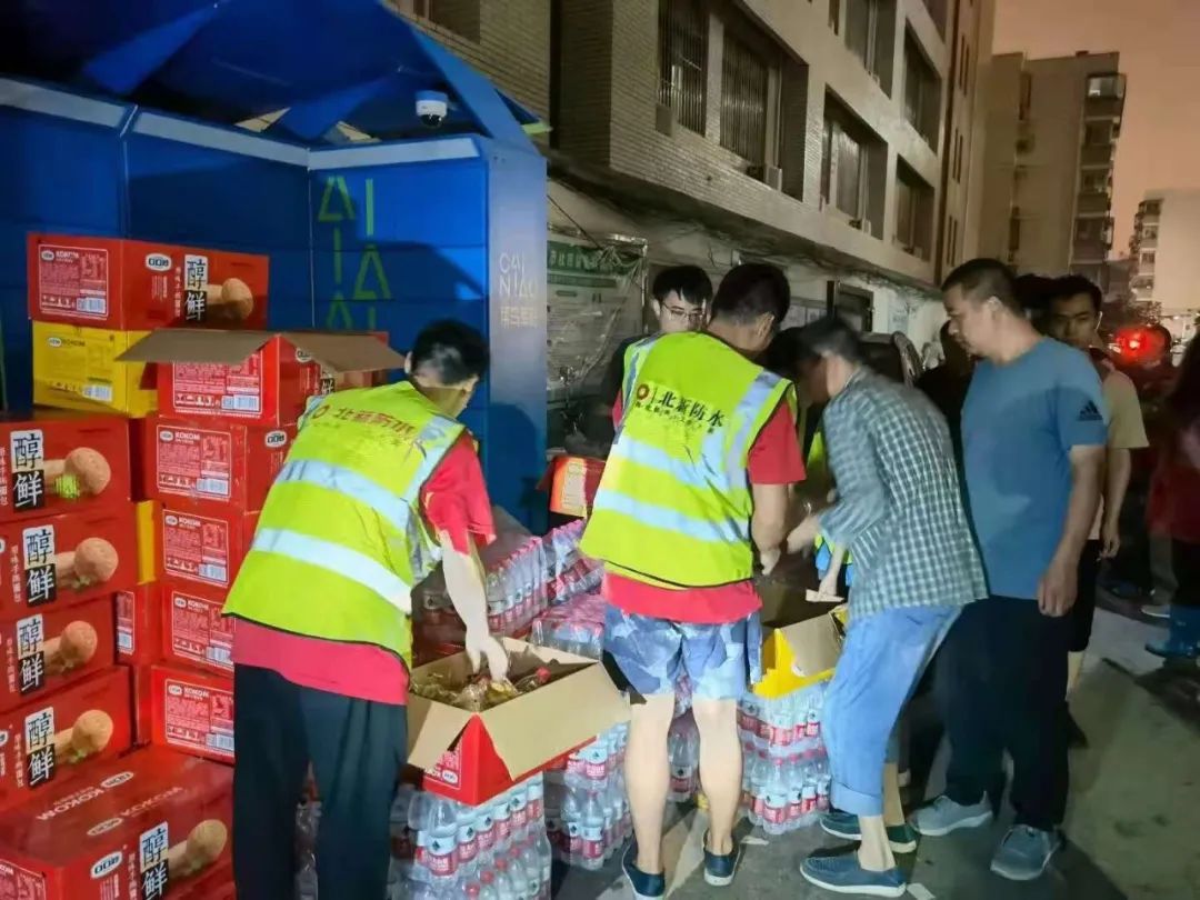 ▲北新防水向郑州市南阳路街道阳光社区发放物资,累计帮助受灾家庭达367户