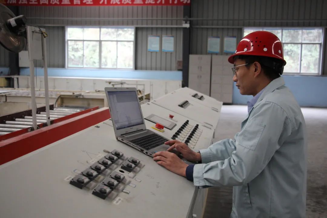 在日常的工作中,陈勇摸索各项设备的工作原理,连续创新,不断改造设备,公司的生产自动化水平也在持续提高。例如:他将GES系统并入工控机控制,利用故障报警和监控实现远程控制。对原湿板测宽测厚装置进行了改进,由切断机前改到翻板机与出板大架间距1.7米处,在直线滑块平台上安装固定弓形架体,并上下各安装一个激光测距传感器,板材在横向通过时进行检测。配料系统辅料添加仓体进出口安装了气动振打和断料报警装置,确保配料添加稳定性。完善了板材在干燥机内运行的的追踪装置和追板装置。通过上述改造可以提高自动化水平、稳定生产工艺。