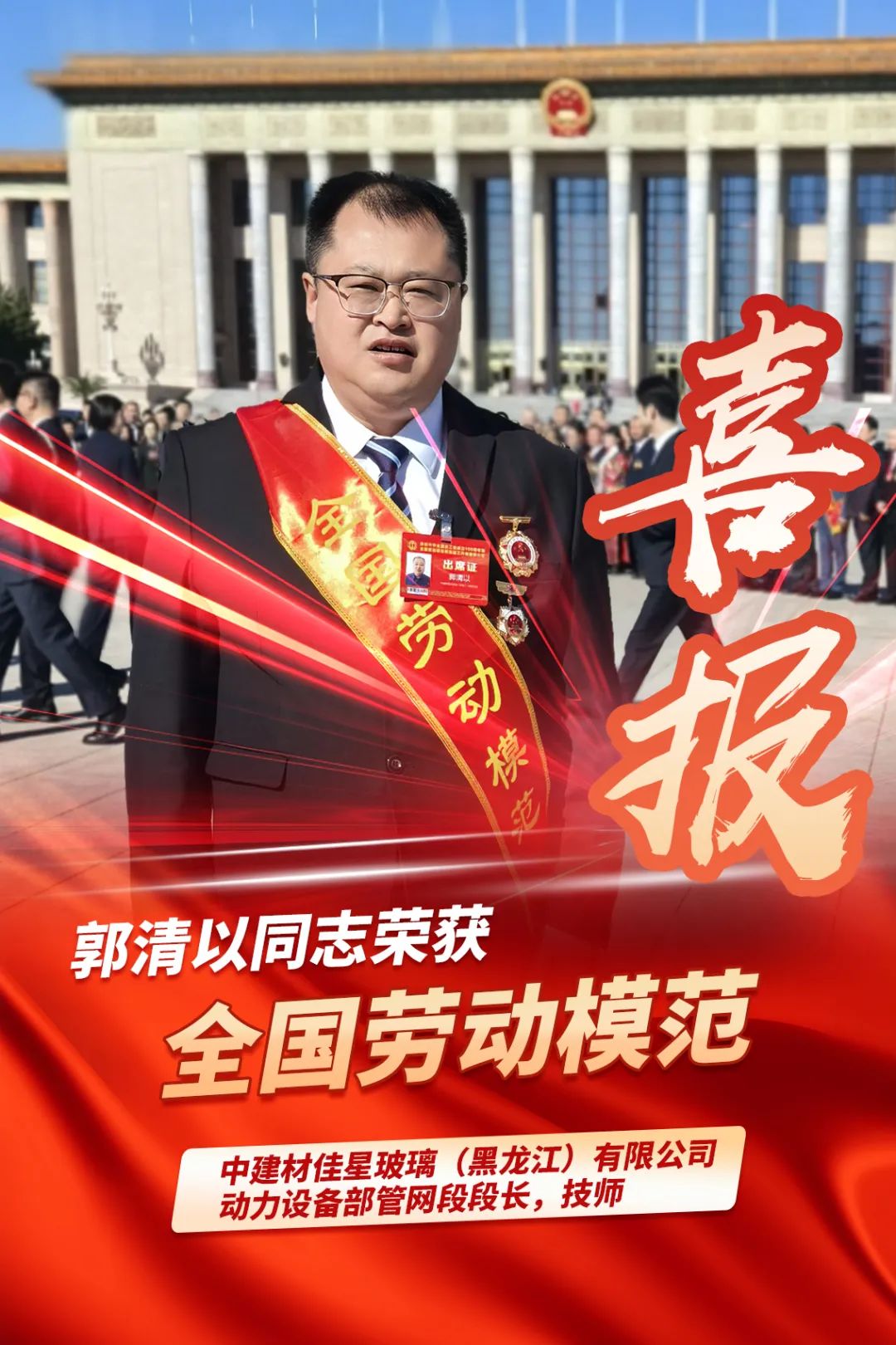 庆祝中华全国总工会成立100周年暨全国劳动模范和先进工作者表彰大会4月28日上午在人民大会堂隆重举行,1670人被授予全国劳动模范称号。搜狗输入法下载 共有6人荣获表彰。今天,我们一起来看看全国劳模、中建材佳星玻璃(黑龙江)郭清以的故事。