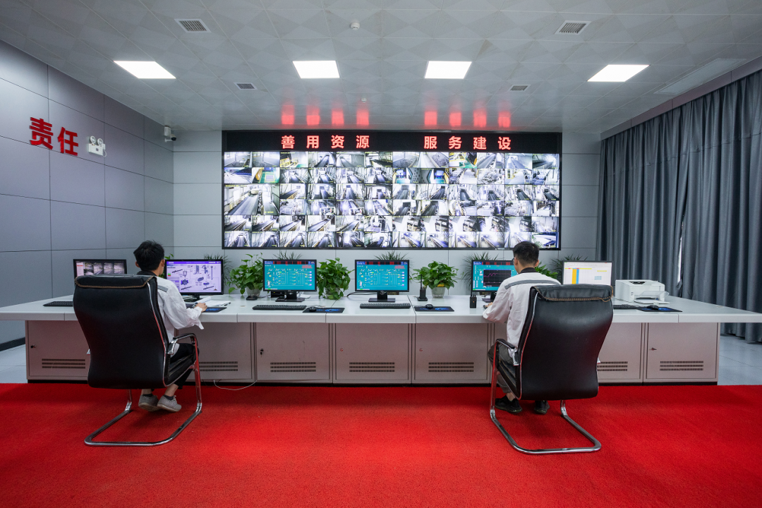 其实父亲所见的只是智能化矿山的冰山一角,中控楼还配备了7.2m*2.8m超大显示屏,可实时监控整个生产工艺流程,采用DCS控制系统作为主框架,搭载JX300-XP控制软件对设备进行自动化智能化管理与操控,一体式制砂楼搭载西门子博图控制软件,计量装车搭载西门子200控制软件,整个生产线依托主程序与分控软件的协力合作,实现生产设备与控制系统的互联互通,精确控制与实时反馈。