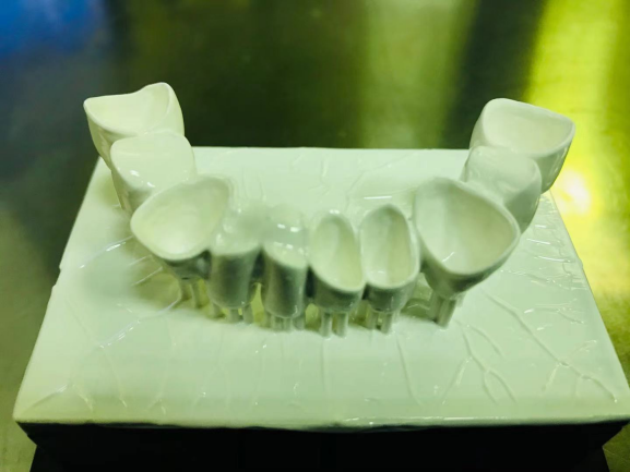该成果是通过陶瓷球形料制备、光固化3D打印陶瓷料浆组分设计、高精密陶瓷3D打印机制备及精度控制、光固化陶瓷材料精细结构继承性烧成控制等一系列核心技术攻关,开发出具有自主知识产权的医用氧化锆陶瓷料浆、树脂及装备,实现3D打印个性化氧化锆陶瓷产品(牙冠、基台、植入体)、树脂产品(牙模、手术导板等)制备及医疗领域应用,核心装备及关键原材料打破国外技术垄断,处于国内领先水平。
