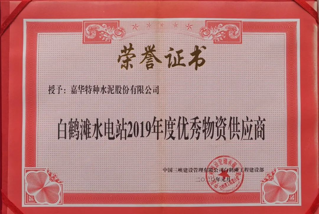 嘉华水泥克服车辆调度、道路施工绕道等复杂的运输条件、疫情防控等多重考验,精心组织、积极协调,保质保量完成了低热硅酸盐水泥的生产、保供任务,助力白鹤滩水电站高质量完成工程建设,被中国三峡建设管理有限公司白鹤滩工程建设部授予“优秀物资供应商”。