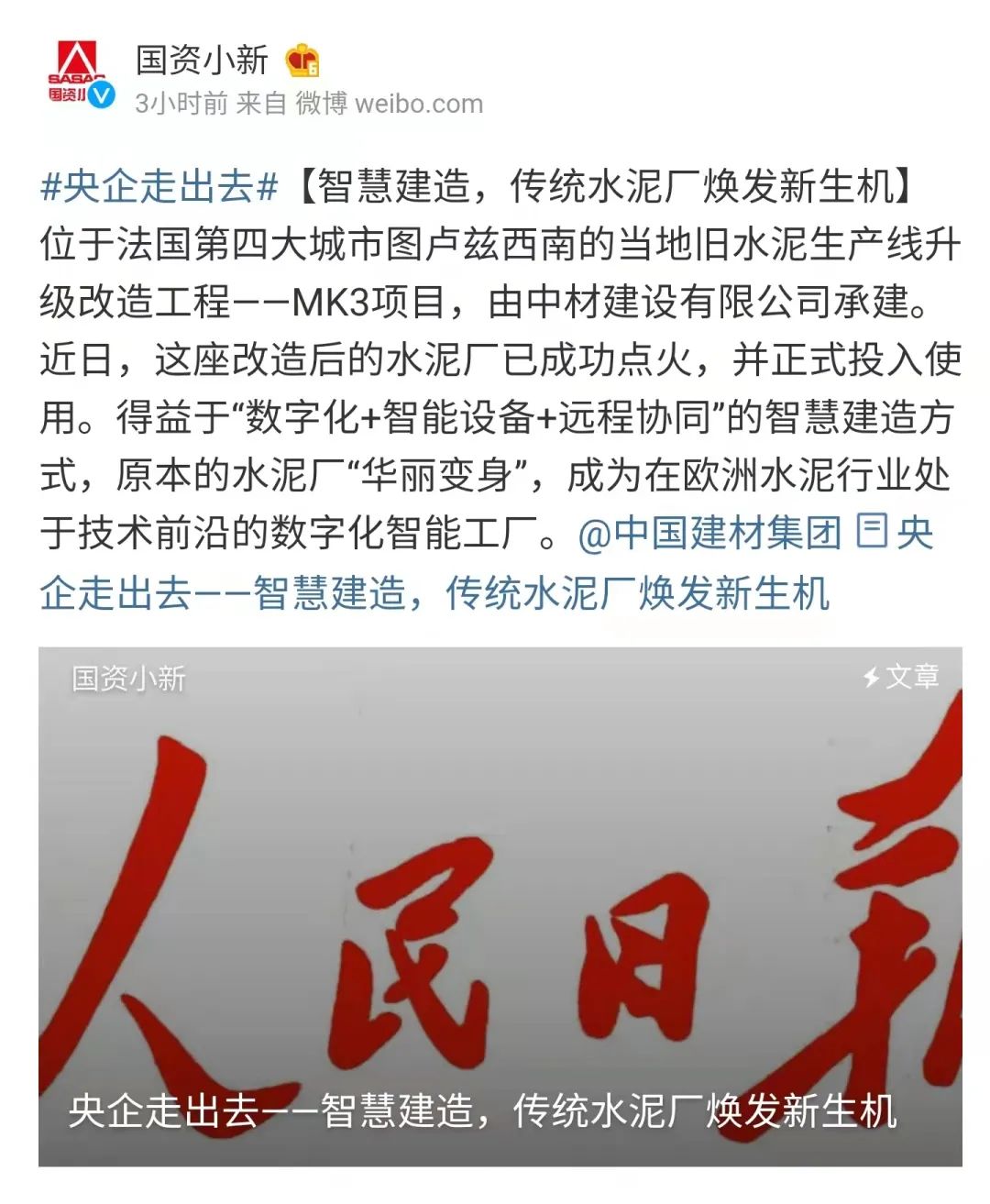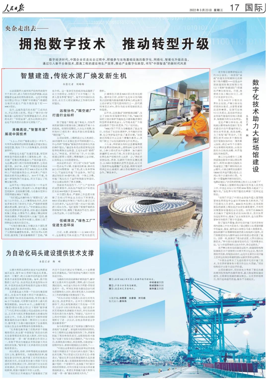 人民日报刊文拥抱数字技术,点赞中国建材智慧建造“走出去”让传统水泥厂焕新貌