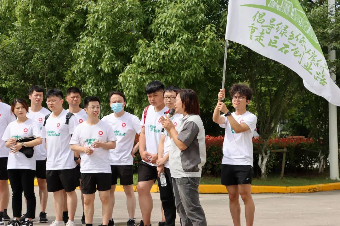 本次“倡导绿色低碳行 重走巨石创业路”徒步活动从智能制造基地出发,白绿相间的徒步队伍,穿梭在现代化的“绿色工厂”步行道上,一旁的“两山”理论、“四不原则”格外显眼,“绿色、低碳、环保!”嘹亮的口号,整齐的队伍,展现出巨石人积极向上的精神风貌。