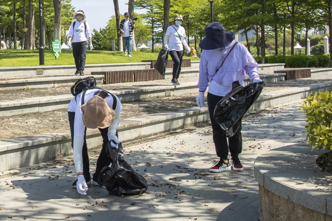 大家沿着杏林湾绿道一边慢跑一边弯腰捡拾道路两旁和草丛里的废弃物、生活垃圾等,为建设文明美丽中国尽自己的一份力量。